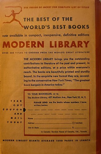 Condition: Very Good+ hardcover in Very Good dust jacket; clean, unmarked pages; tight binding; jacket shows light edge wear and age toning consistent with mid-century Modern Library editions