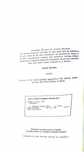 The portraits include artists, political figures, friends, adversaries, and intimates, written with Hellman’s characteristic sharp intelligence and emotional restraint. Several essays originally appeared in The Atlantic, Esquire, and The New York Review of Books, and together they form one of the most influential literary memoirs of the 20th century.