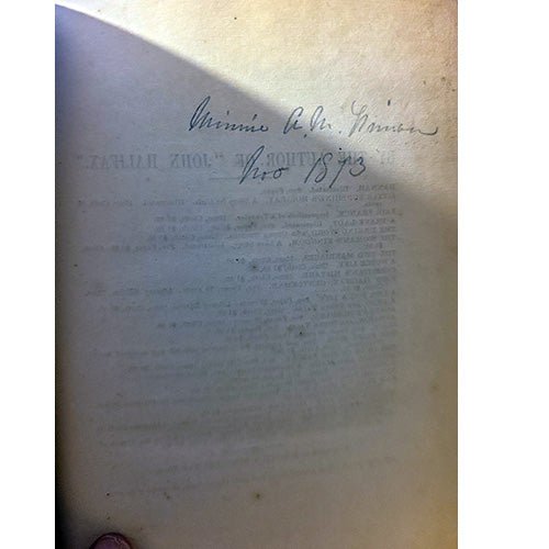 Bound in rich brown cloth with gilt lettering and ornamental black design, this edition exemplifies the artistry of 19th-century gift books—volumes meant to be cherished and displayed as symbols of refinement and moral education. The inscription dated 1873 situates it firmly in its original historical moment, when literature was both a pastime and a teacher.